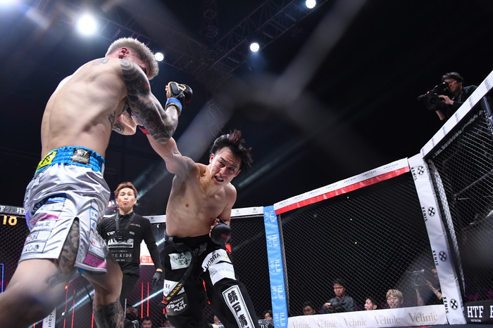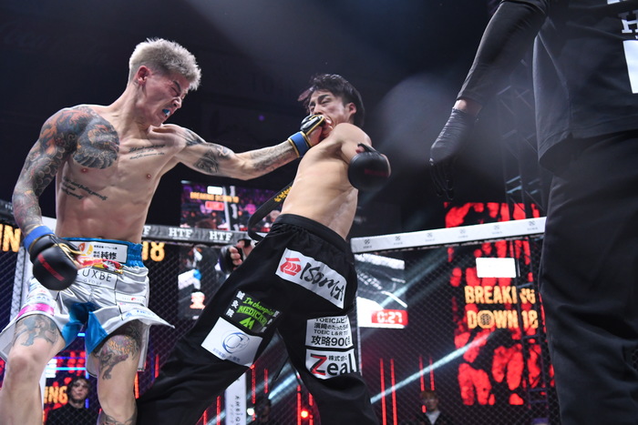 判定はドロー、特別ルールで再延長に。大野が左ハイ、左フック。大野の左フックからの右ストレートがヒットするが、どうしても両者相手を抱え込む。その中でもパンチでヒットを奪うのは大野。左三日月からの左右フックの大野に、大野は胴廻し回転蹴りも繰り出す。最後にリキのパンチで大野が倒れるが、これはスリップとの判断。リキは抗議する。