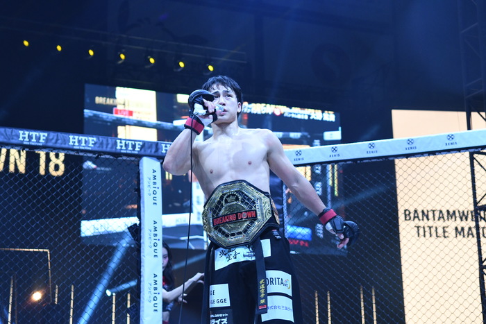 大野はマイクを持つと「押忍。リキくん、なんかごめん、ありがとう。俺は王者としてBreakingDownが一番好きだからこれからもここで戦わせてください。俺に王者としての仕事を任せてください」とアピールした。