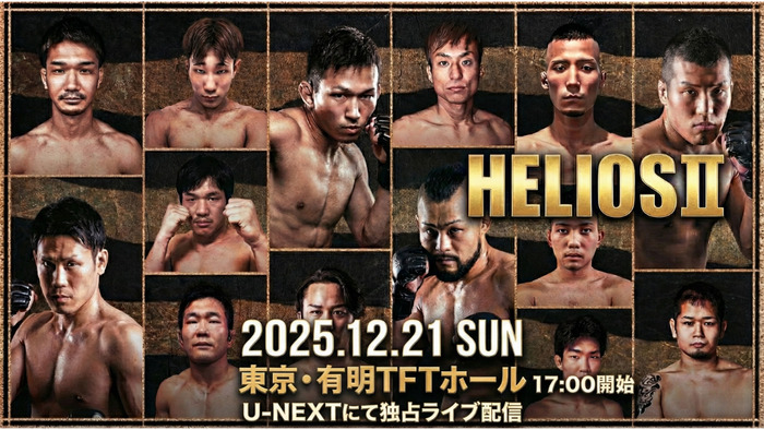 2025年12月21日(日)に東京・有明TFTホール1000にて開催される『GRACHAN79×HELIOSⅡ』。2025年シリーズを締めくくるビッグマッチの第2部『HELIOSⅡ』が、U-NEXTでライブ配信が決定した。