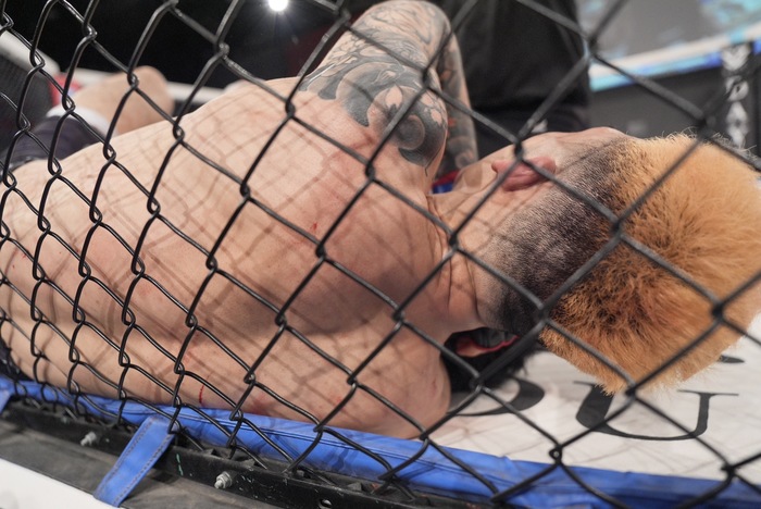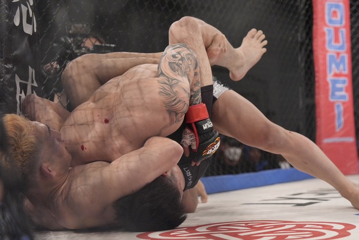 ※シングルレッグテイクダウンから松岡の立ち際にRNC