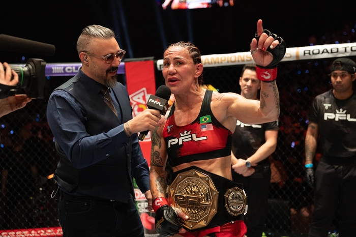 📹フェザー級レジェンドのクリス・サイボーグがタイトルマッチ(5R)で新星サラ・コリンズを相手に3RリアネイキドチョークでPFL女子フェザー級王座戴冠👑