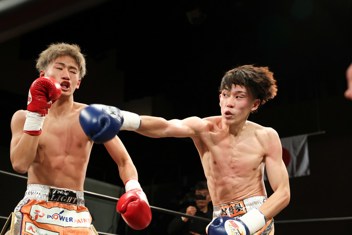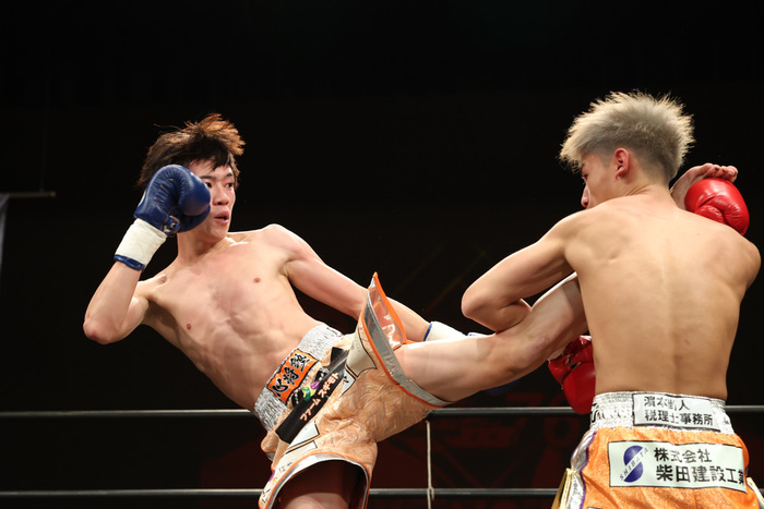 前戦でプロ初勝利を掴みとり今回がプロ4戦目となる同士である根本と林の1戦。試合は1R、ジャブに左フックと放つ根本に対し林は前蹴りにミドル・ローと蹴り技を中心に繰り出す。根本は近距離でのパンチ回転が速い、林はラウンド終盤にはカーフを効かせ好印象を残す。続く2R、中央に陣取る林は1R同様に蹴り技で圧をかけていく、根本は入ってきたところに1・2・3とパンチ連打を放つもここでも林の蹴りが印象的か。2R終了時点でのオープンスコアは3者共に19-20で林を支持。