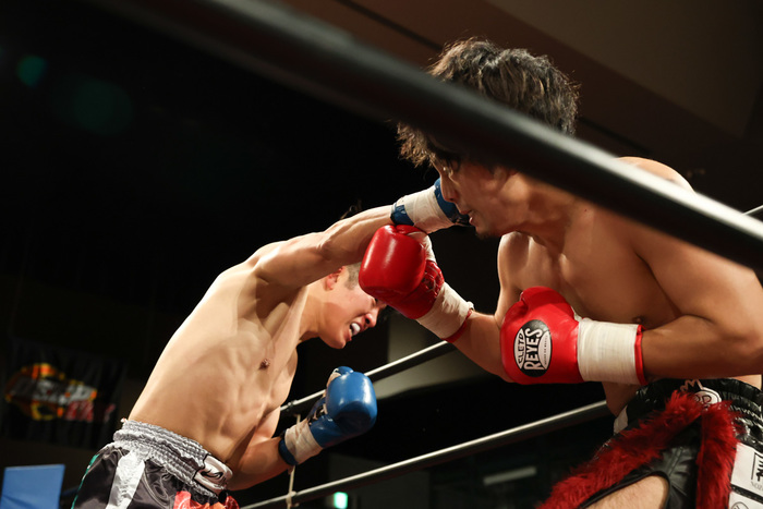 続く2R、ダウンを獲り返したい大前は早々から圧をかけていきTETSUをロープ際に詰めてのパンチ連打に繋げていく。しかしTETSUのガードは堅い、下がらされる場面が続いていくもジャブにストレートで対応しながら大前の勢いをいなしていく。序盤は大前のアグレッシブさが光るも、ラウンド後半はTETSUのパンチのヒットにディフェンスの巧さが光った形だ。2R終了時点でのオープンスコアは2名が20-18、1名が19-18で3者共にTETSUを支持。