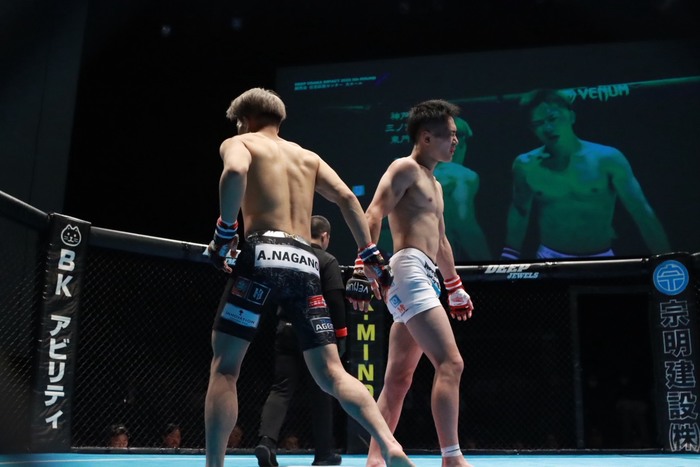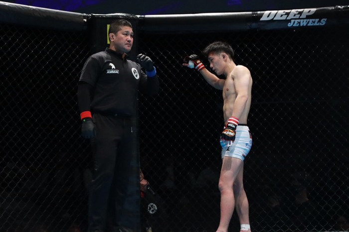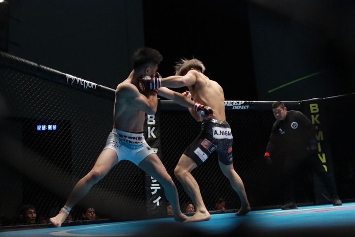 砂田は、DEEP大阪で3連勝中。上村亮馬、佐藤利空、古市陸をいずれも1Rフィニッシュしている。空手とボクシングがバックボーンの23歳だが、2勝はリアネイキドチョーク。