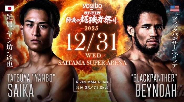 2025年12月31日『RIZIN師走の超強者祭り』(さいたまスーパーアリーナ)にて、ライト級王者ホベルト・サトシ・ソウザ(ボンサイ柔術)と対戦予定だった野村駿太(アメリカン・トップチーム)が、練習中の怪我でドクターストップにより欠場。サトシの対戦相手がイルホム・ノジモフ(ウズベキスタン)に変更となった。ノジモフは、大晦日出場のためにフェザー級から階級を上げてライト級で“ブラックパンサー”ベイノアと対戦予定だったが、急遽、サトシのベルトに挑戦することとなった。