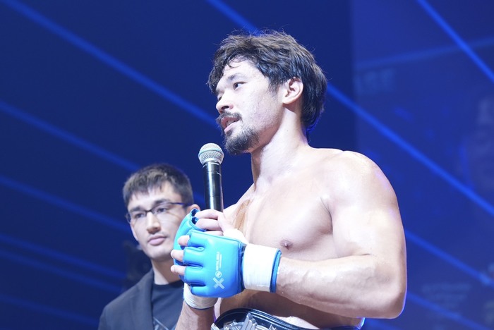ゴイチがウェルター級王者に。「日本のファンの皆さん、本当にありがとうございます。私はようやくPANCARSEのタイトル手に入れることができました。昔からPANCRASEの選手何人かをとても尊敬していて、夢の一つを叶えられてとても嬉しいです。ありがとうございます」と語った。