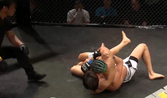 1R、先にダブルレッグからケージに詰めてリフトアップ中央でテイクダウンした中嶋はサイドから袈裟固め、左腕を両足で挟み、Vクロスを極めるが、柔術家でもある高本レフェリーの目前で絞めてタップを感じたか。自ら解除。しかし、タップは確認されず試合は続行。頭を抜き、スタンドに戻した渡部は左カーフを当てると、その打ち終わりに中嶋はダブルレッグテイクダウン。