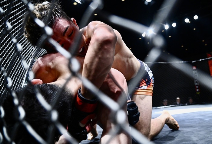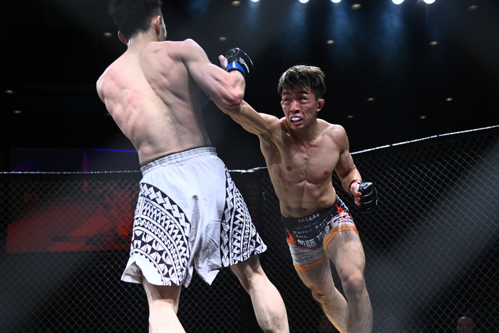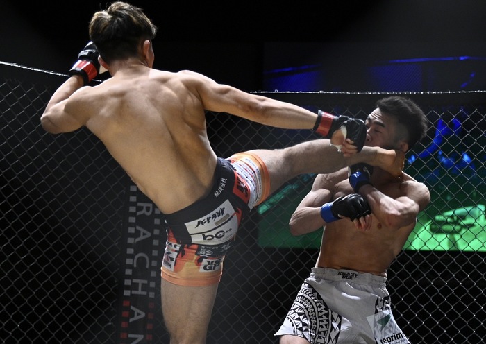 静岡県湖西出身、クボジムの新鋭――能坂陸哉。打撃を基盤にした攻撃的なスタイルで、持ち前のスピードとステップワークを生かしたテンポの速い試合運びが特徴だ。