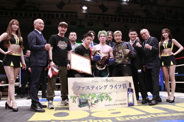 颯太朗はマイクを持つと「マジ、超最高です。勝ったら言いたいことがあったので。俺は中学校くらいから親に迷惑ばかりかけてすいませんでした。感謝の気持ち伝えたいので言わせてください。いままで育ててくれてありがとうございました。この家族に恵まれてよかったと思います。今日来てるおばあちゃんには長生きしてもらいたいので長生きしてください。今日ベルト取ったけれど一番だとは思ってないので、来年俺が一人ひとり倒していくので期待してください」と、涙で何度も声を詰まらせながら語った。