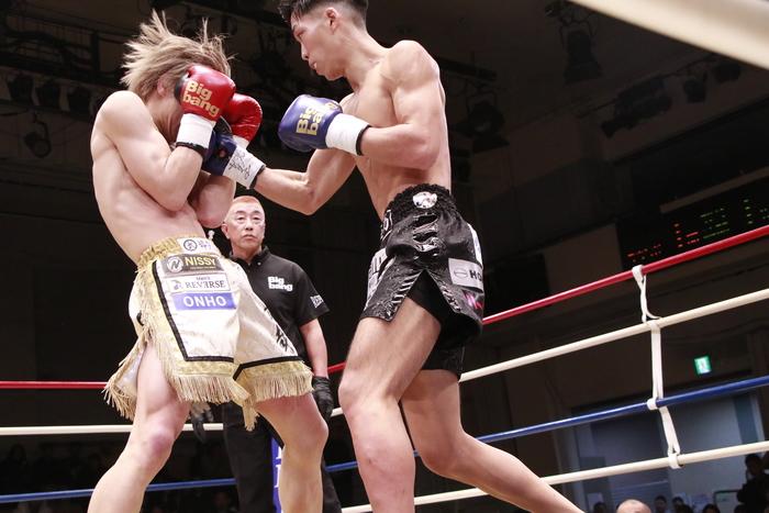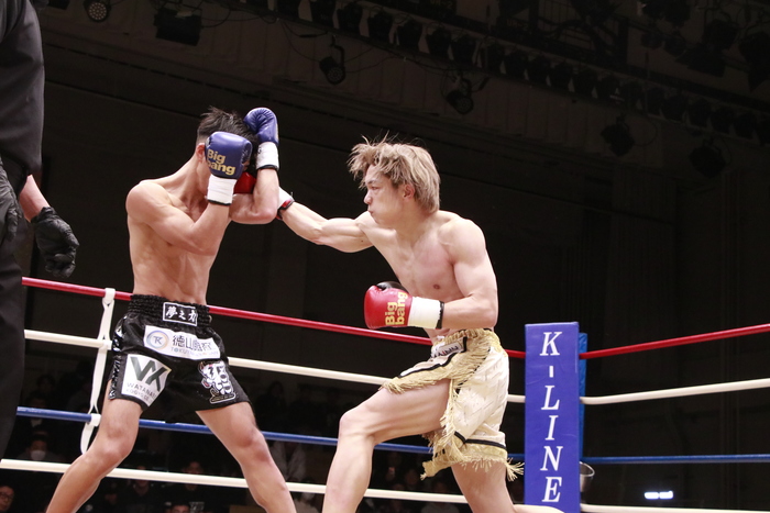 好戦的な貴哉だが渡邉も負けじと応戦。右カーフの蹴り合いから始まり、パンチを交錯させた。3Rに貴哉がパンチをまとめるも、両者決め手なくドローとなった。