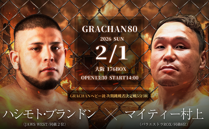 対するマイティー村上は、そのリングネーム通り「マイティー(強力)」なパワーを秘めたパラエストラROXの重量級戦士。熊本で活躍後、25年8月のGRACHAN福岡大会に参戦。上野勇貴を2R TKOに下している。ランキングこそ6位だが、一発で局面をひっくり返す破壊力を持っており、上位狩り(下剋上)によるタイトル挑戦権強奪を虎視眈々と狙う。