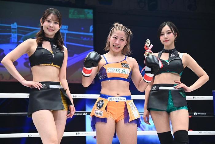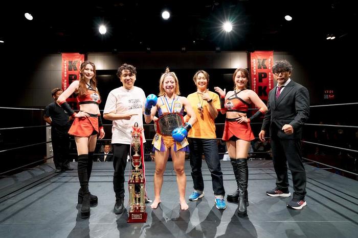 2025年11月3日にアクロス福岡イベントホールで開催されたKPKB vol.26『VIVA LA KICK 2025』にて、Hotaru (Continue)を判定2-0で破りKPKB(九州プロキックボクシング)女子バンタム級王者となった鈴木万李弥 (KNOCK OUTクロスポイント吉祥寺)。