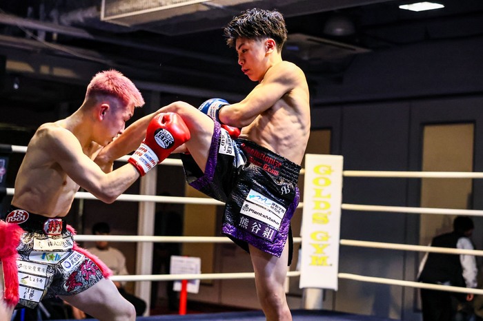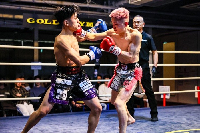 2戦2勝の日原と3戦3勝(2KO)の大久保の無敗18歳対決。日原のセコンドには原口健飛がつく。1R、軽やかなステップから右ロー、左ジャブの日原に、大久保は接近戦での打ち合いでは一歩も退かない。