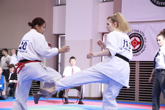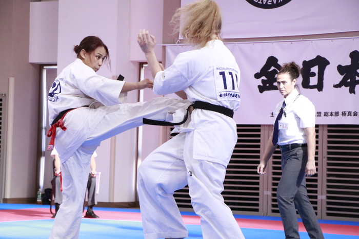 序盤は宮本が手数多く攻めていたが、エカテリーナが崩しも混ぜた突きと下段。宮本の上段前蹴りが軽く当たる場面もあったが、体格で上回るエカテリーナが最後は前へ歩くようなヒザと突きでラッシュ。本戦で決着をつけた。