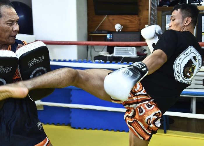 ヒザをミットに突き刺すシッティチャイ(C)KNOCK OUT