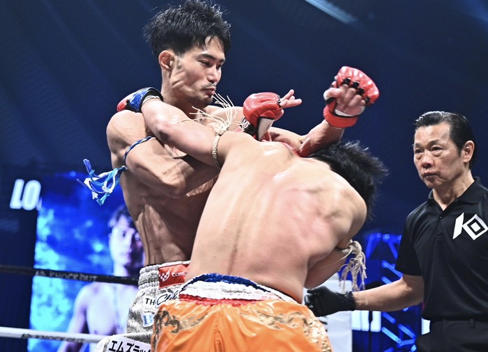 3R、首相撲になってもロムイーサンを倒す重森。ロムイーサンは重森の蹴り足をキャッチするが、重森はコカされない。蹴って距離をとる重森にロムイーサンも右ロー。ロムイーサンは右ミドル、重森は左フックを返していく。