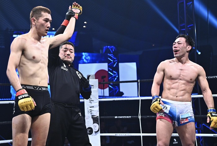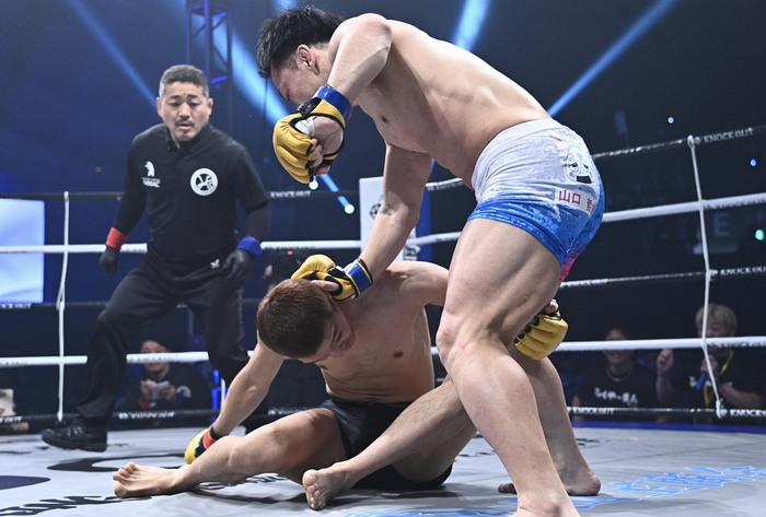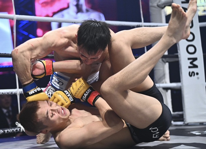 さらにワンツーの連打で追い込む中村にふくやーまんはダウン寸前となるが、シングルレッグでテイクダウン。立ち上がると強打で前に出る中村にふくやーまんはシングルレッグで組み付くもテイクダウンできず。