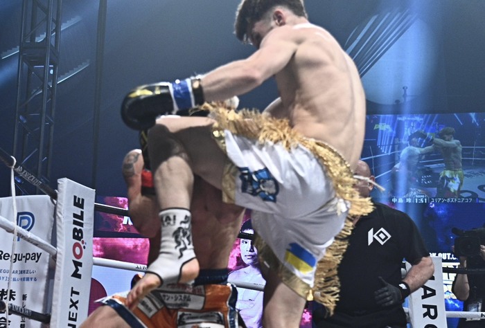 ポズドニアコフは身長176cm(中島は167cm)、戦績16勝(6KO)4敗の23歳。ウクライナIFMA王座、Europe WKU K1 -70kg王座、ウクライナK1 WAKO王座を獲得。シッソンピーノンジムに寝泊まりしシッティチャイと一緒に練習してムエタイの腕を磨き、タイで行われたKARATE COMBAT、カンボジアのクンクメール大会でも勝利している。2025年4月の初来日で中島からダウンを奪って勝利すると、6月には漁鬼に判定勝ち。