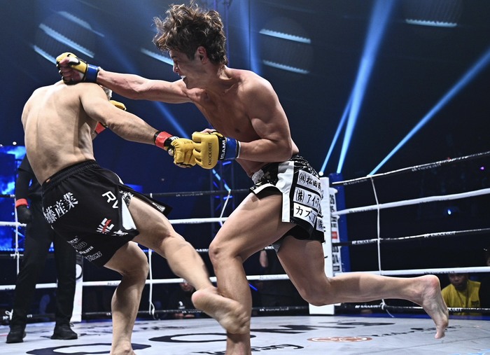 2度目のUNLIMITEDルールで対戦するのは、KNOCK OUTで活躍するキックボクサーの漁鬼。沖縄のアグレッシブファイターで、TENKAICHIウェルター級王者、BEAST同級王者。2022年7月、KNOCK OUTに初参戦すると中島弘貴に延長戦でTKO負けも接戦を演じ、2024年10月のKNOCK OUT-BLACKウェルター級王座決定トーナメント準決勝では中島玲に判定負けも1Rにダウンを奪った。