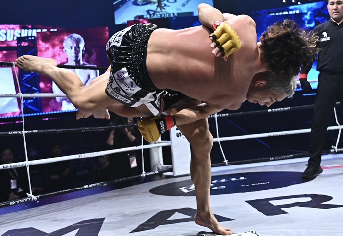 2Rもすぐにテイクダウンしてマウントを奪い、パウンドを見舞う松嶋。漁鬼が右フックをヒットさせるがすぐに松嶋がテイクダウン。飛びヒザ蹴りの相打ちからバックに回ったのは松嶋。そのまま後ろへ豪快に投げる。