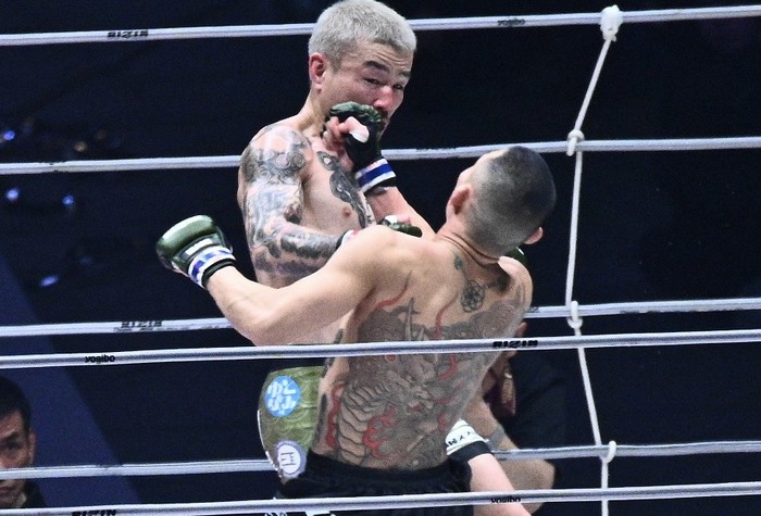 安藤の右のスマッシュをかわして右を当てた福田が踏みつけ、左フックでTKO勝ち