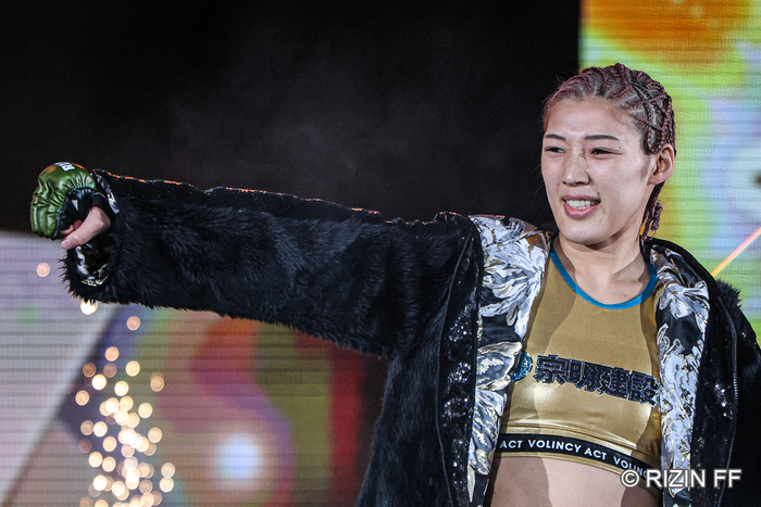 「最近ずっと言ってるんですけど、女子格闘技をもっと面白くしていきたいなと思ってて、凄くいい選手がたくさんJEWELSにもいるので、そういう選手たちもどんどんRIZINに上がってきて、RIZINの中でも女子格闘技を盛り上げていけたらいいなと思っています」