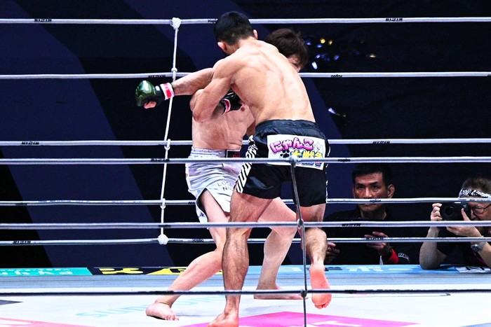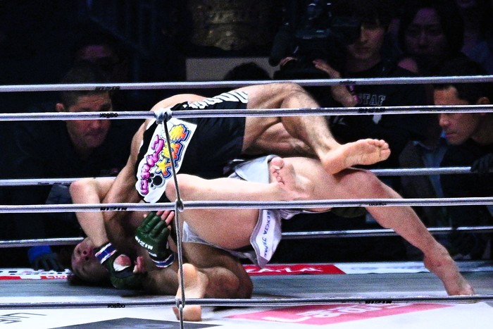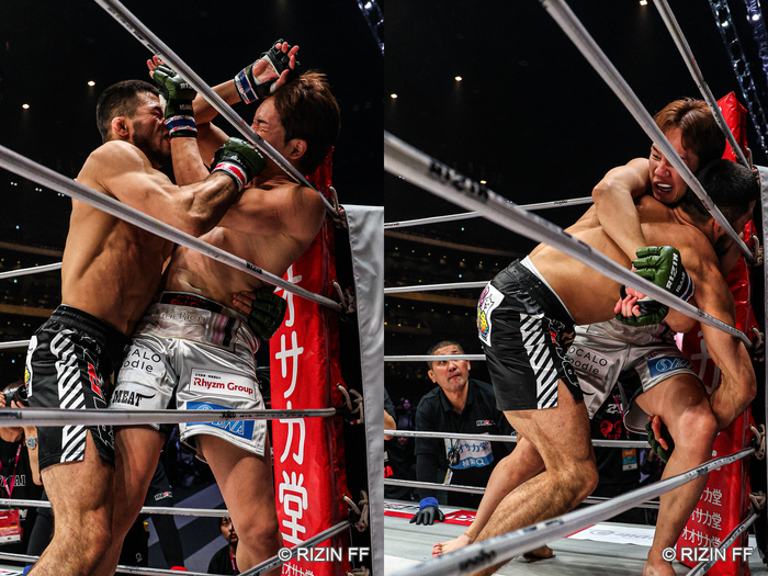 ジャーマンスープレックスのように肩口から落とす豪快な投げ。同階級のMMAでは、なかなか見られない光景が、リング上で繰り広げられていた。