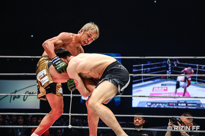 2025年12月31日(水)さいたまスーパーアリーナで開催された『RIZIN師走の超強者祭り』にて、第6試合のRIZINフェザー級(66.0kg)5分3Rで対戦したカルシャガ・ダウトベック(Turan Orda/Tiger Muay Thai)と久保優太(PURGE TOKYO/BRAVE)。
