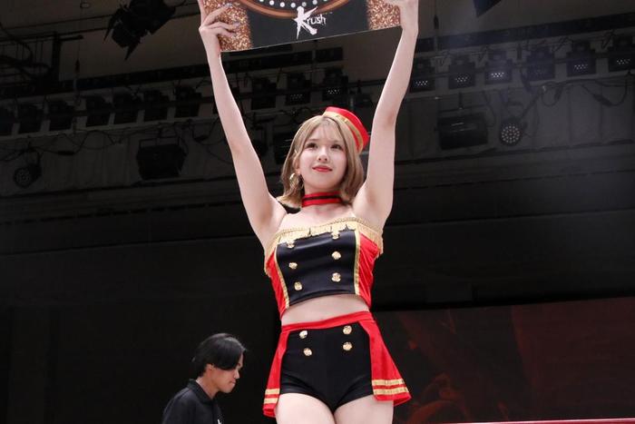 また、元Popteenレギュラーモデルの経歴から、現在「Krushガールズ」としての活動や、「K-1アマチュア大会」出場に向けての抱負も紹介された。