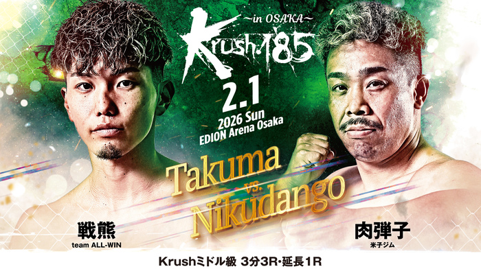 丸山は元W clutchライト級王者で戦績は6勝(5KO)4敗。Krushは今回が初参戦。