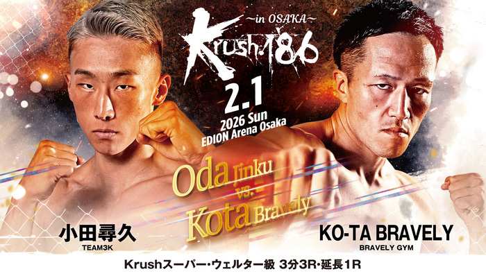 小田はフルコンタクト空手出身で、2021年11月にプロデビュー。“マッスルタンク”のニックネーム通りのムキムキボディの持ち主で、空手の蹴り技にプラスしてパンチの強打を持つ。Krushには2023年2月から参戦し、2024年5月に第5代Krushスーパー・ウェルター級王座を獲得した。10月にはストーヤン・コプリヴレンスキーに挑み、ダウンを奪う大健闘の末に延長Rで判定2-1の惜敗。2025年5月の初防衛戦でアビラル・ヒマラヤン・チーターにKOで敗れて王座を奪われ3連敗となったが、9月の松本和樹戦で勝利して再起。戦績は9勝(4KO)4敗。