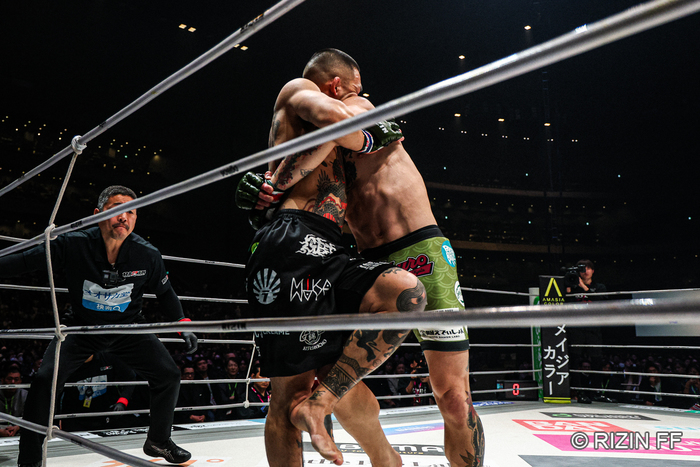 「やっぱKrushでチャンピオン獲ってるから、打撃はね、土台は十分あるし。あとは、どんだけ他の部分っていうので、センスもすごいあるし、何よりも心意気、彼の持ってる志にすごい感動したというのが率直な意見なんで。そういう熱い気持ちで格闘技に取り組む、強くなることに取り組むっていう子やったら、練習メンバーのクルーにいてもらってもすごい嬉しい存在やなとは思うし、ぜひ『京都に来る予定あったら、いつでもセッションしようぜ』みたいな。結構こういう僕好みなスキル持ってるから、テイクダウンディフェンスとか強くなったらRIZINファンの人にも、面白いものを提供できるMMAファイターになれるんじゃないかなとは思っています」