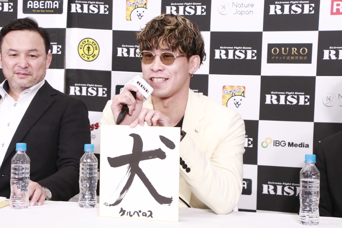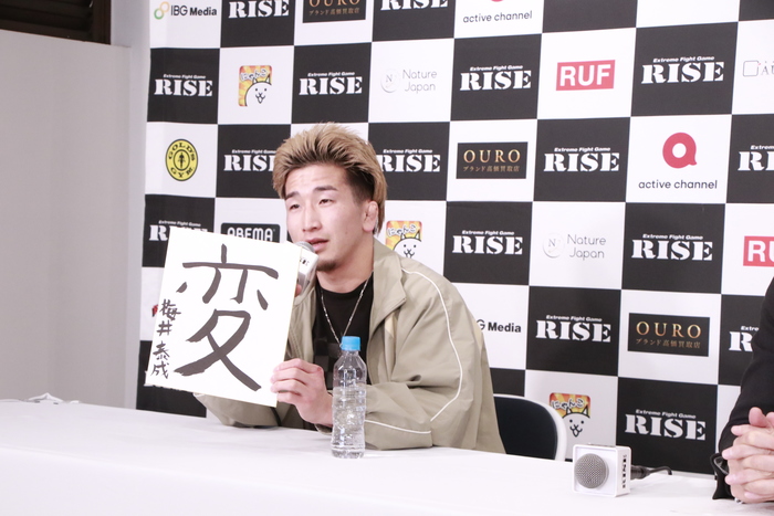 会見では、伊藤隆RISE代表と出場選手たちが「今年の目標を漢字一文字」で発表。