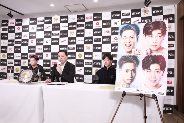 会見で松本は「RISEの23周年記念大会のメインを張れることを嬉しく思います。23周年大会を締めくくれるように、自分が王者になってリングを降りられるように、残り数日で仕上げてきたい」と挨拶。