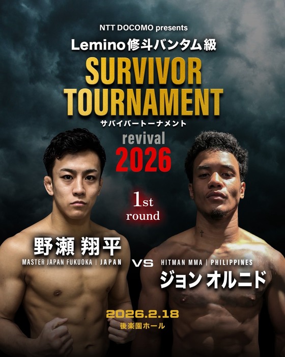 2026年2月18日(水)『Lemino修斗.3』(Lemino配信)東京・後楽園ホール大会にて、8選手参加の「バンタム級サバイバートーナメント リバイバル 2026」が決定。1回戦3試合(5分3R)の対戦カードが発表された。