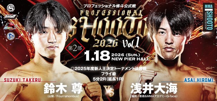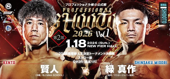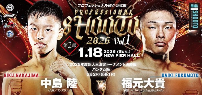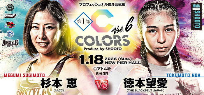 2026年1月18日(日)東京・ニューピアホールで昼夜で開催されるプロフェッショナル修斗2026 開幕戦 。第1部『COLORS Produce by SHOOTO Vol.6』と第2部の『プロフェッショナル修斗公式戦』の試合順が発表された。同大会は、ツイキャスプレミアにてLIVE配信。前売り4千円で第1部と第2部の2大会が視聴可能となっている。