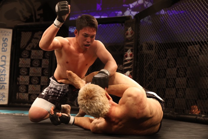2R、左ストレートを入れた石原。タックルで飛び込んだが、築地が入れ替えてケージに押し込むとボディロックからテイクダウンを狙う。こらえていた石原だが、引き込み気味に下になる。スイープを狙うがパウンドを入れる築地。石原の立ち際に頭部にヒザを入れた。またタックルに来た石原に築地はギロチンで引き込むが外れる。築地がクローズドガードから細かいパンチ・掌底を入れるが、石原は体を起こしてパウンドウィれる。下から三角クラッチに捕らえる築地。そのまま上になりマウント三角の体勢になったが、石原が股下から抜けて立ち上がる。残り1分。両者消耗している。石原がボディロックからテイクダウン。バックマウントを狙う。正対しgてガードを取る築地に石原はパウンド・ヒジを入れる。タイムアップ。