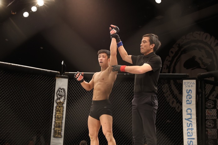 1R、サウスポーの吉村に土橋はオーソドックス。タックルに入った吉村。ケージに押し込んでクラッチすると投げてテイクダウン。パウンドを打ち込む。バックに回る吉村だが、土橋がスクランブルから立ち上がりスタンドに。スタンドで土橋のパンチがヒットしたが、吉村はすぐに組み付いてタックル。