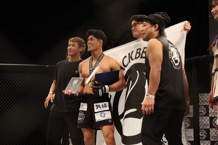 1R2分1秒、リアネイキドチョークでTBJ沖縄の飯野がフェザー級新人王に。