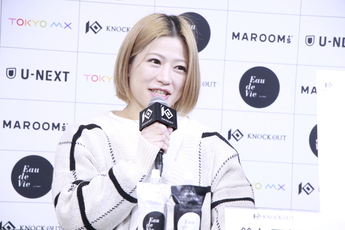 会見に出席した鈴木は「今回、女子初のUNLIMITEDということで注目度が高くなってきていると思うんですけれど、ここは怖がらず打ち合いに持っていって、年末のようなKNOCK OUTの盛り上がる試合を女子で見せたいと思うので頑張ります」と意気込み。