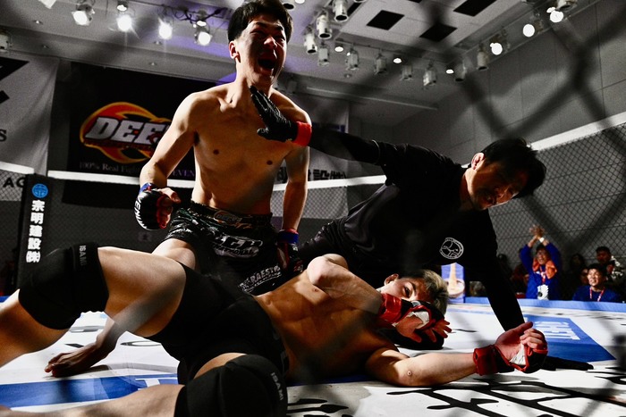 大越は「ホッとしています。(同門の福嶋の一本勝ちに続くフィニッシュ。打撃は)最初からそのつもりでした。作戦通り。もっともっと練習して強くなれるように頑張ります。応援よろしくお願いします」と語った。