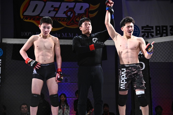 判定はマスト0-3で横山が勝利「本当はKOとか一本で勝ちたかったですけど、とりあえず勝ててよかった。ダナ・ホワイト待ってます(苦笑)。(打撃は?)作戦通りです。もっともっと強くなってすぐにプロに行くんでもっと強い相手をあててください」と語った。