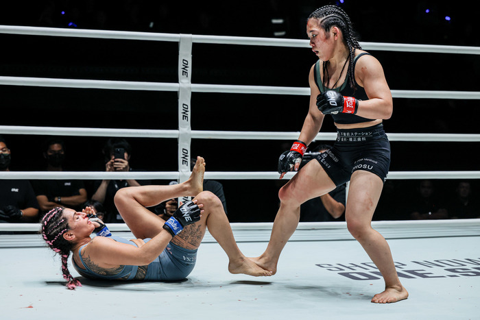 11月の前戦日本大会では平田樹を相手に全ラウンドでテイクダウンを奪いONE女子MMA史上でも屈指の有効打109発を記録(平田は3発)するドミネートで判定勝ち。再び連勝街道に乗った。