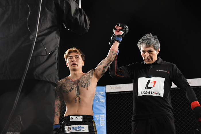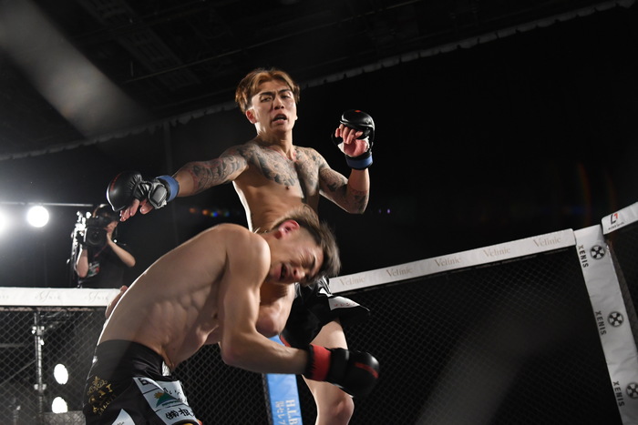 龍志はマイクを持つと「ちょっと情けない試合をしてすいません。次、タイトルと言われている中でもっと圧倒的な勝ち方したかったんですけど、KINGカズ選手めちゃくちゃ強かったです。急なオファーだったんですが僕はコンディション整ってたので、このつまらない試合は僕の実力不足だと思っています。3月、野田、来いよ」と野田蒼をケージに呼び込む。