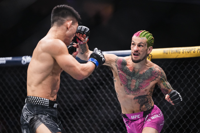 対する5位のピンブレットは、UFC7勝0敗の31歳。人気先行の評価もあったが、24年7月にキング・グリーンを1R 三角絞めに極め、25年4月の前戦ではマイケル・チャンドラーを相手に終始優勢に進めて3R TKO勝ち。一気に評価を覆した。思い切りのいい打撃と、10の一本勝ちをマークする極めの強さが武器。MMA23勝(7KO・TKO/10SUB)3敗。