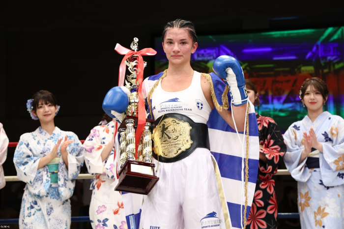 ソフィアは、アマチュアキックで92戦85勝の好成績を収め今年4月にプロデビュー。第3代Krush女子フライ級王者のメロニー・ヘウヘスから判定勝利。8月のKrushで池内紀子と対戦し、判定勝ちで第7代Krush女子フライ級王者となった。。