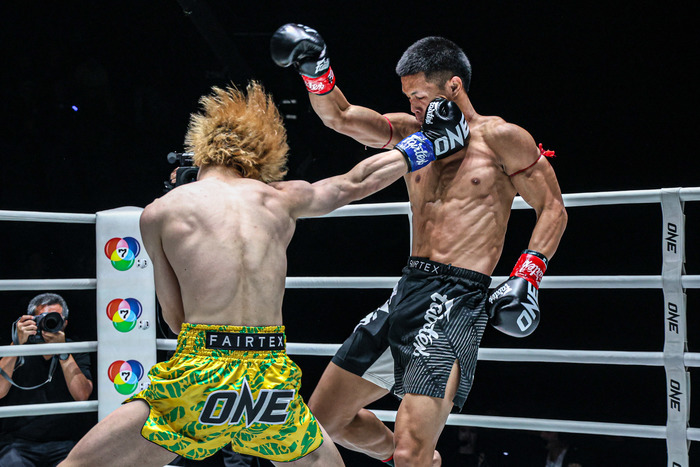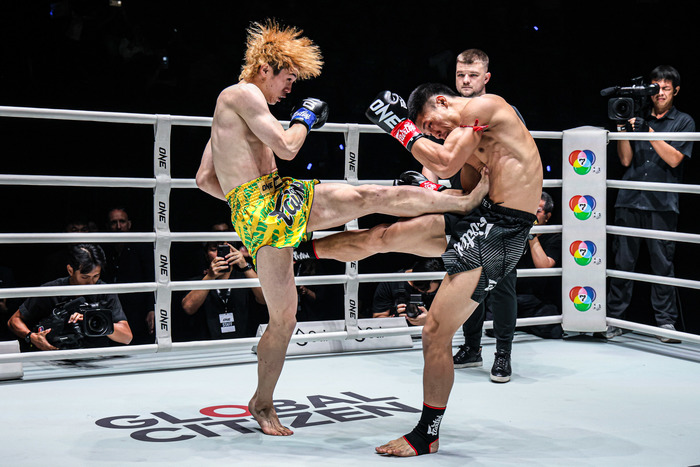 1R、嵐舞はサウスポー。ワンツーでどんどん前に出ていくチャラムカオを嵐舞もジャブからの左ストレート、右フック、左ミドルで迎え撃つ。左の三日月から左ハイキックの嵐舞。チャラムカオが右ミドルを蹴ってくると、ボディへ右ストレートをカウンターで合わせる。さらにヒザを突き刺す嵐舞。