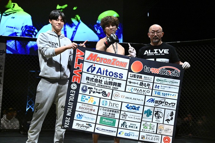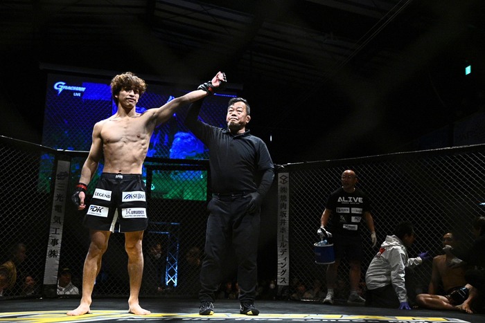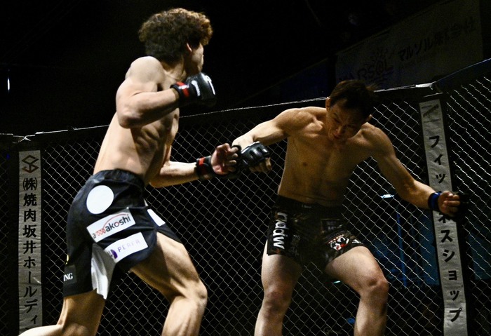 1R、ともにサウスポー構え。村瀬は左ストレートで飛び込むと姜が後方にダウン、すぐにレフェリーが間に入った。7秒KOの村瀬は「RIZIN目指して頑張ってるんで村瀬賢心という名前を覚えてください」と語った。