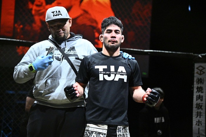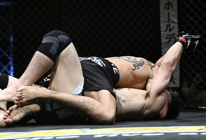 脇を戻した山下にパウンドのチアゴは鉄槌も。山下は前に落とそうとしたところでホーン。判定3-0でチアゴが勝利した。