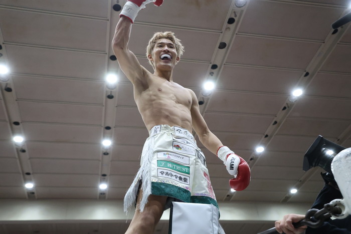 左右のショートを当てていく上野は至近距離でのハイキックも織り交ぜて前へ出ていき、左フックから右フック、左ボディから左フック、そして右フックで丸山をダウンさせ、KO勝ちを奪った。